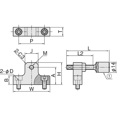 金属同士の衝撃音を緩和するウレタンボルト付です。ウレタンボルトは細目仕様で精密な位置決めが可能です。