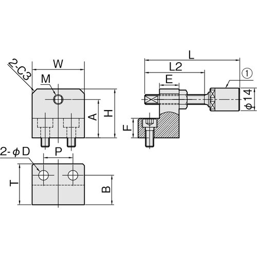 金属同士の衝撃音を緩和するウレタンボルト付です。ウレタンボルトは細目仕様で精密な位置決めが可能です。