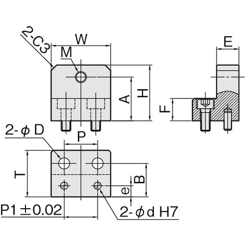 ストッパーボルトやストッパーブロックなどと組み合わせ、精密な位置調整が可能です。位置決めに便利なノックピン付です。