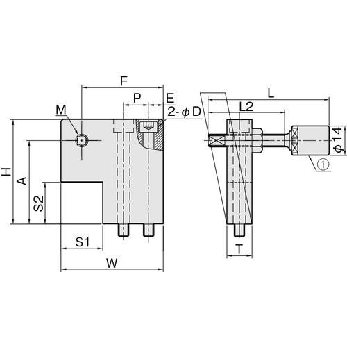 金属同士の衝撃音を緩和するウレタンボルト付です。ウレタンボルトは細目仕様で精密な位置決めが可能です。