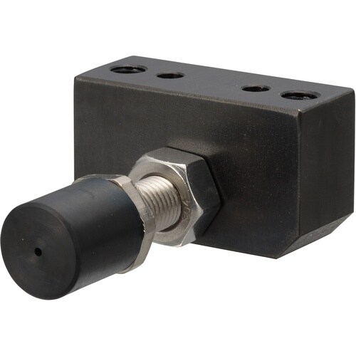金属同士の衝撃音を緩和するウレタンボルト付です。ウレタンボルトは細目仕様で精密な位置決めが可能です。ウレタン部は交換パーツとして別売もしています。位置決めに便利なノックピン付です。