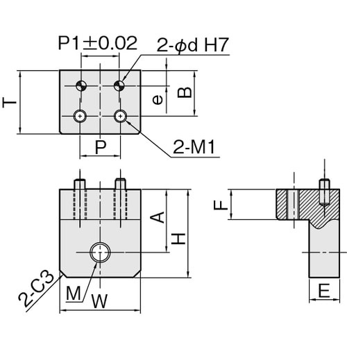 ストッパーボルトやストッパーブロックなどと組み合わせ、精密な位置調整が可能です。位置決めに便利なノックピン付です。