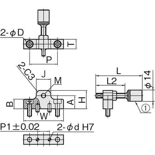 金属同士の衝撃音を緩和するウレタンボルト付です。ウレタンボルトは細目仕様で精密な位置決めが可能です。ウレタン部は交換パーツとして別売もしています。位置決めに便利なノックピン付です。