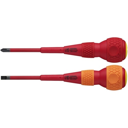 2本組です。段差がないスリム形状で、狭い箇所の作業がしやすいです。当社従来品(当社No.225)よりも最大22%軽量化です。速結端子対応刃先です。刃先が触ってわかるエンボス形状です。 |