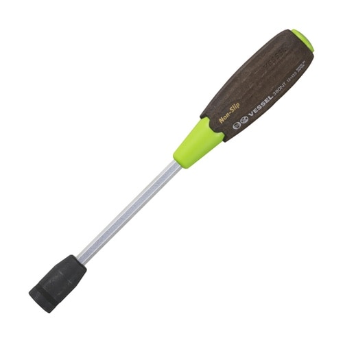 油が付いた手でも滑らないノンスリップグリップ。天然木材の手になじむ質感や肌触りを感じることができる「木樹脂」を採用。ソケット部黒染仕上げ。レンチがかけられる六角軸(クロムメッキ)。 |