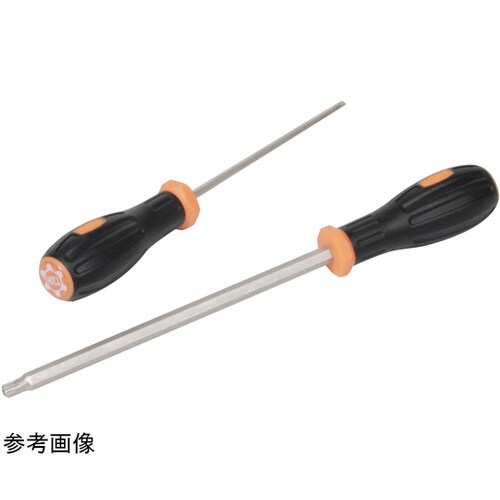 先端がトルクス(いじり防止タイプ)タイプのドライバー。軸が六角形状なのでスパナなどで回すことができます。六角軸。プラスチック柄は絶縁のためのものではありません。