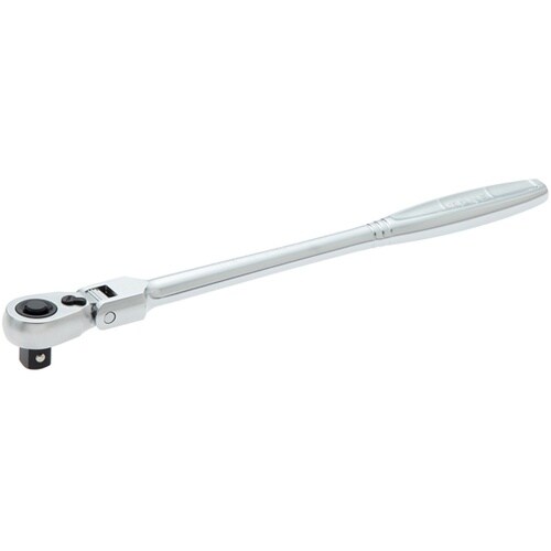 72枚歯で送り角5°。ラチェット頭部の可動は15度づつの角度調節できます。握りやすいハンドル形状。ワンプッシュ操作でソケット交換可能。グッドデザイン賞受賞。 |