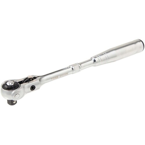 72枚歯に対して2つのセグメントカムにより歯数144枚相当を実現(送り角2.5°)。ヘッド部はロック機構により自在に角度の調整できます。グリップ部は中空仕様により軽く作業性が良好。 |