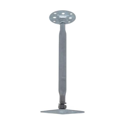 大引との干渉を防ぐフラット型の鋼製束です。ターンバックルを回し、大引の高さ(レベル)を調整可能です。住宅の支持金具。 |