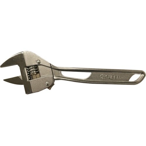 口開き(ウォーム)緩み抑制機構付。ラチェット機構:ON・OFF切替レバー付。薄型、軽量で作業性抜群。口開きはワンサイズ上のワイドタイプ。軽量タイプ、ラチェット式でありながら強度はJIS級。 |