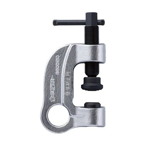 スクリューとカムとパッドにより、作業中の振動等に対してもクランプははずれにくい機構。ロープ(命綱)の引張力の増加に比例して、カムが傾いて接面が大きくなり、より強くグリップ。 |