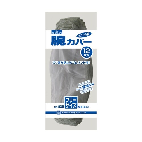 全長38cmの塩化ビニール製腕カバーです。両端はズリ落ちを防止するゴムバンド付きです。 |