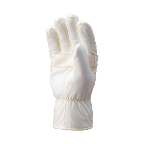 耐熱ポリウレタンをラミネートしたポリエステル生地を採用しており、耐熱性に優れています。(耐熱温度:150℃)手のひらの一部をパラ系アラミド繊維生地(トワロン?ニット)で補強しています。 |