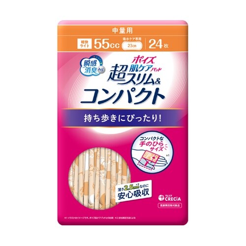 日本製紙クレシア ポイズ 肌ケアパッド 超スリム&コンパクト 中量用 24枚(55cc) 88333 88333 1ケース A03C-2699