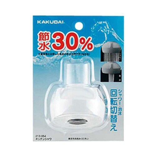 泡沫とシャワーの切替え。取付ネジW22山20。整流器に比べて約30%(カクダイ比)の節水効果があります。使用温度:1ー60℃。パッキン付き。 |