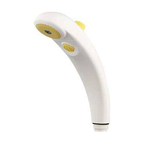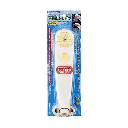 ボタン操作でシャワー・一時止水の切替え。器具破損防止のため、完全止水しません。アダプター付き。吐水穴外周φ35ミリ。 |