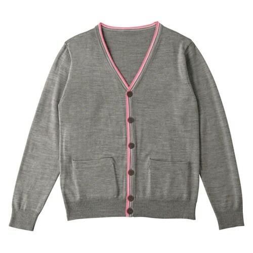 レインボーカラーのグラデーションラインがポイントの少しゆったりめのシルエットカーディガン。暗くなりがちなカーディガンを、明るく顔映りも良く見せてくれるデザインに仕上げました。 |