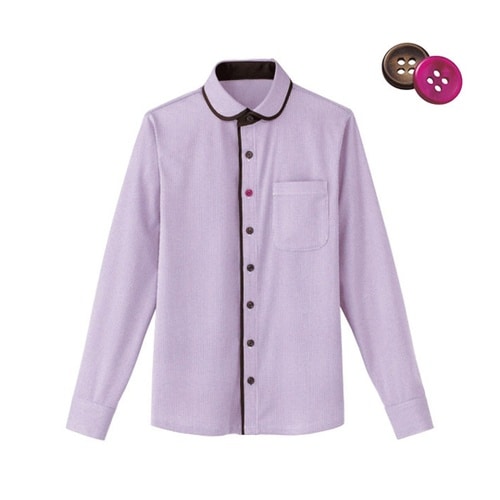 爽やかなチェック柄のニット生地で信頼と親しみを演出した長袖ニットシャツ。布帛のような柔らかなニット生地や丸衿が、やさしげで親しみやすい印象に。 |