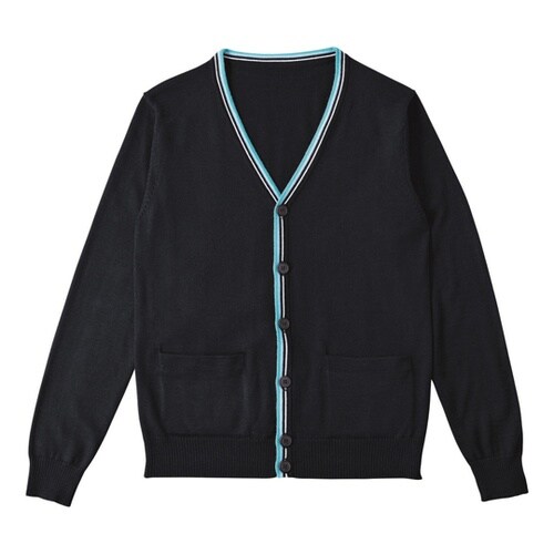 レインボーカラーのグラデーションラインがポイントの少しゆったりめのシルエットカーディガン。暗くなりがちなカーディガンを、明るく顔映りも良く見せてくれるデザインに仕上げました。 |