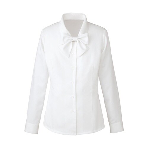 ENJOY 長袖リボンブラウス AIR CON PIQUE ホワイト 15号 EWB433 EWB433 1枚