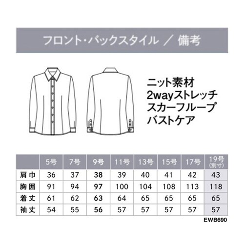 ENJOY 長袖シャツブラウス TRICOT KNIT KERSEY ピンク 19号 EWB690 EWB690 1枚
