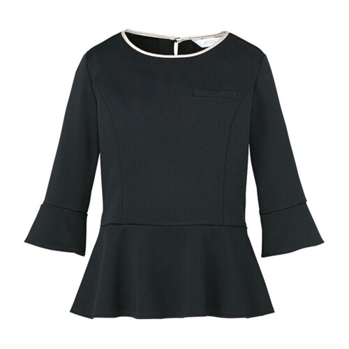 可憐な花を思わせる美しい広がりのペプラムラインで、もちろんプロの品格もキープ。素材は、グログランのようなシャープで美しい立体感を演出したニットを使用。 |