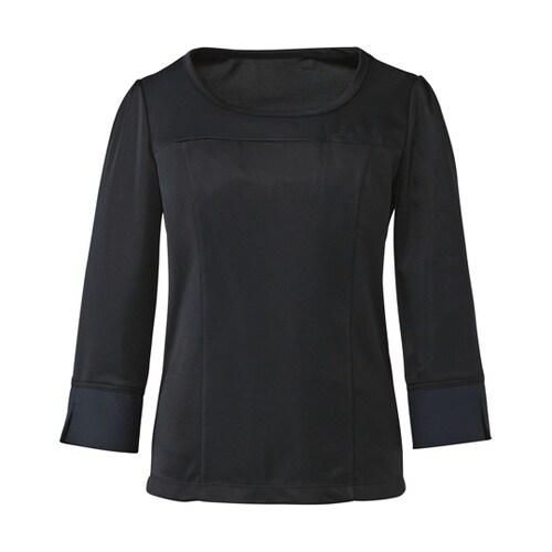 ベストともコーディネート可能。七分袖布帛使いでフォーマルで美しい身だしなみを演出。パイピングを効かせて、顔まわりをすっきり。1枚で着用OKのプルオーバー。首元や袖口の配色がスタイリッシュな印象です。 |