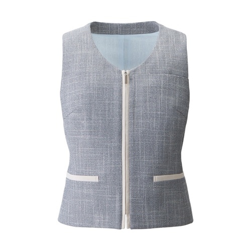 ウエストを絞らない「Iラインシルエット」と「フロントジップデザイン」が特徴のベスト。ファッショントレンドを取り入れた先進的なデザインと表情豊かなサマーツイードが女性らしさとクラス感を演出します。 |