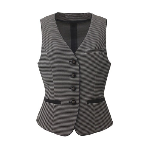 清潔感漂うクラシカルなマリンベスト。カジュアルに思われがちなボーダーも、トリミングをきかせた細いピッチなら、凛としたオフィス仕様に。