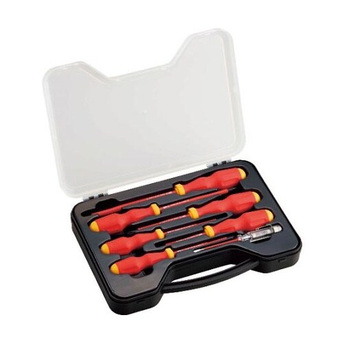 絶縁性の素材に覆われたドライバーで電気・通信設備工事などの作業に適しています。身体への感電を防ぎ、作業者の安全を守ります。 |