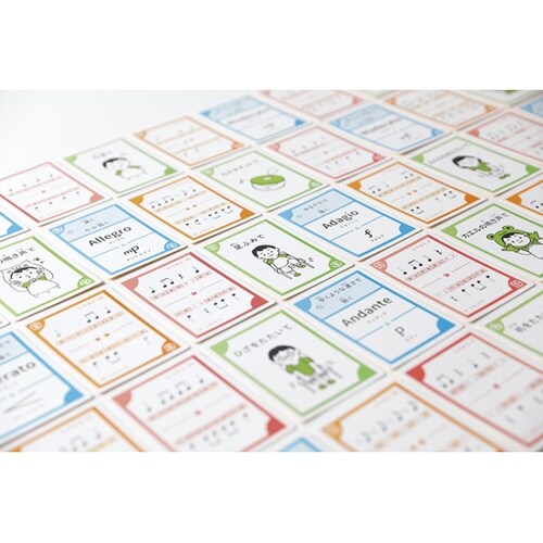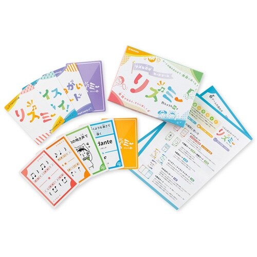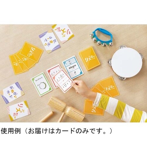 材質:紙 | セット内容:表現カード(20枚)、リズムカード(レベル1・20枚 レベル2・20枚)、演奏カード(20枚 +楽器カード 10枚)、リズミ…