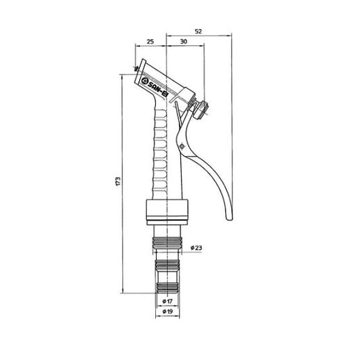 適合ホース:内径12ー18mm。ストレート・フレア・一時止水に切替ができます。調整ナットとストッパーで散水状態を固定できます。散水、園芸、洗車等に。 |