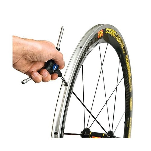 リムの外側からニップルを回し振れ取り調整を行うホイール用のスポークレンチ。Y字レンチにより十分なトルクと微調整のしやすさを両立しました。 |