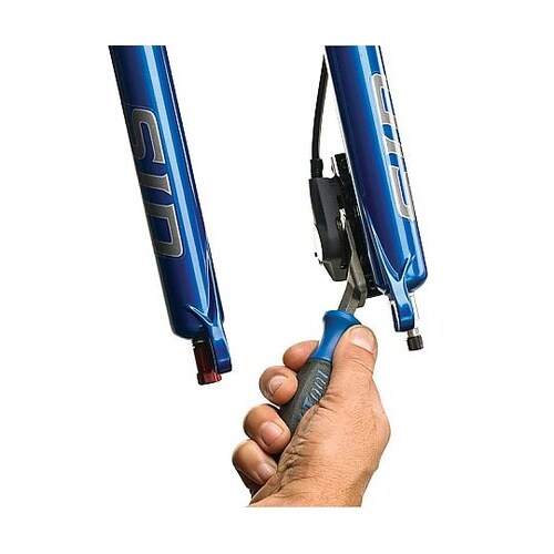油圧式ディスクブレーキの閉じてしまったピストンやディスクパッドを広げるためのツール。作業対象面に接触する部分をポリッシュ仕上げにし、ピストンやパッド表面を傷つけにくくしています。 |