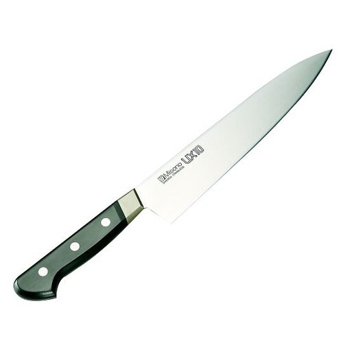 スウェーデン製の高純度ピュアステンレス特殊鋼を使用し、ミソノの古い伝統と新しい技術の複合から生まれたステンレス鋼包丁の最高峰です。ハガネ包丁なみの鋭い切れ味と研ぎやすさです。 |