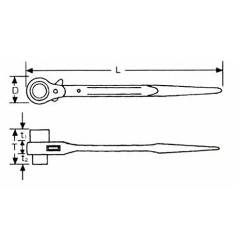 鉄骨・橋梁・鉄塔・土木・建築・電気工事の締付作業や機械・治工具の整備組立等、幅広い用途。ハンドル先端は、鉄骨の穴合わせや、ワイヤロープの広げに最適。