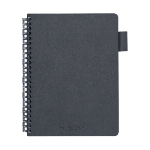 落ち着いた色味の合皮表紙を使用したノート。ビジネスシーンでも使いやすい。リングが開くのでリーフの差しかえができ、使い方に合わせてカスタマイズしやすいのが特長です。 |