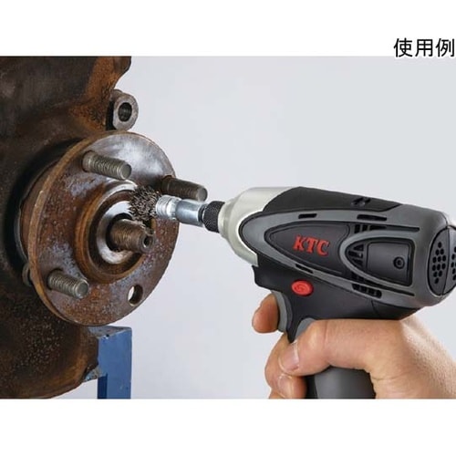 他部位や車以外のサビ取り等にも使用可能です。六角軸でポリッシャを確実に固定できるから、使用する動力工具の最大の力で使用でき、作業の時短につながります。自動車のアクスルハブ回りの清掃・サビ除去用。 |