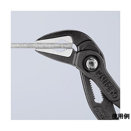 工場設備や自動車関連のメンテナンス作業に従来のウォーターポンププライヤーに比べ、ヘッド部とジョイント部が大変スリムで狭い場所での作業に適しています口先が長いため、フラットな対象物も安定して掴めます。 |