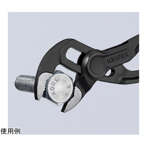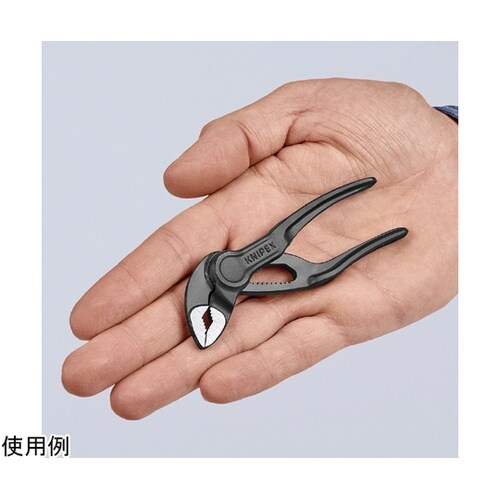 KNIPEXの”コブラ”は高性能なウォーターポンププライヤーです。ジョイント部は横方向へのブレを防止する3枚合わせのボックスジョイント。片手操作で素早く簡単にアゴの幅を細かく調整できます。 |