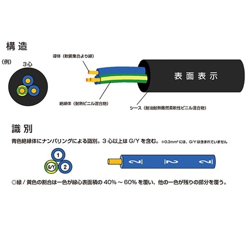 UL、cUL、電気用品安全法に適合しています。耐油性、耐熱性、柔軟性に優れています。VW−1、FT1の難燃試験合格品。各種電気機器及び制御盤内外の配線等に使用可能。