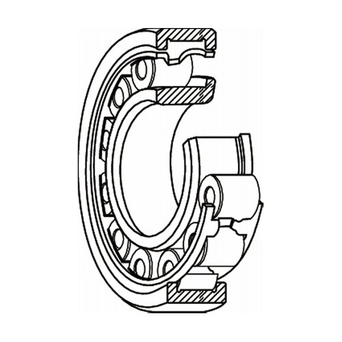 円筒状のころと軌道とが線接触をしている単純な形状の軸受です。負荷能力が大きく、主として、ラジアル荷重を負荷します。転動体と軌道輪のつばとの摩擦が小さいので、高速回転に適しています。
