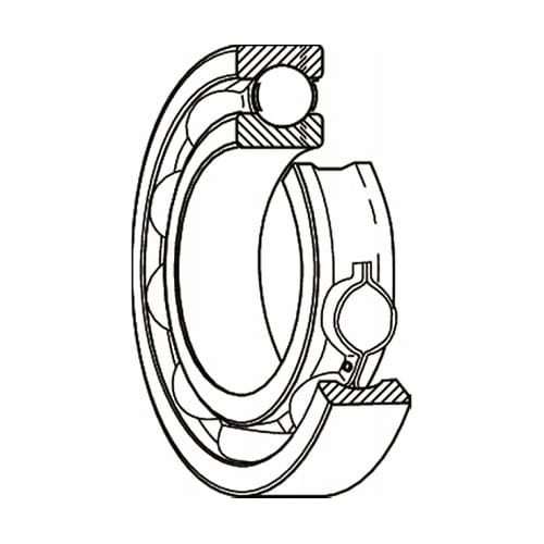 単列深溝玉軸受は、転がり軸受の中でも代表的な形式です。ラジアル荷重のほかに、両方向のアキシアル荷重を負荷することができます。