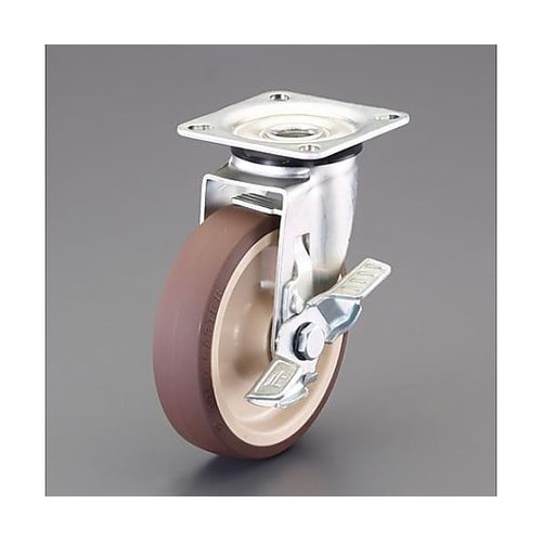 ベアリング入り耐油性、耐摩耗性に優れ床面の汚染等が少ないことが特性のウレタン車付きです。車輪の回転を止めるシングルストッパー付き。 |