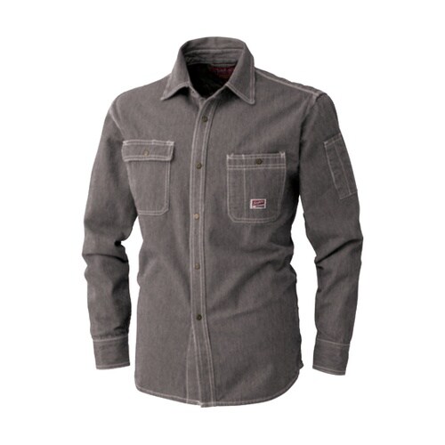 ボールバイオウォッシュによる生地の表情が魅力的10.5オンスのヒッコリー生地にボールバイオウォッシュをかけている。付属はYKKファスナー、YKKスナップを使用。 |