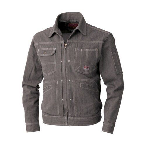 ボールバイオウォッシュによる生地の表情が魅力的10.5オンスのヒッコリー生地にボールバイオウォッシュをかけている。付属はYKKファスナー、YKKスナップを使用。 |