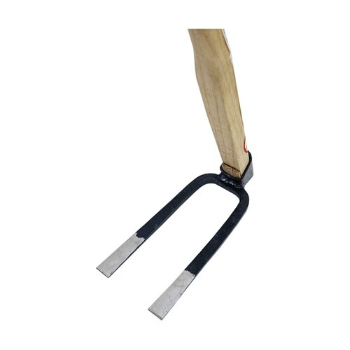 長切れで丈夫な日本製。掘り起こしや土の塊をほぐす作業に適します。頭部は熱処理済なので、丈夫です。2本爪タイプ。 |