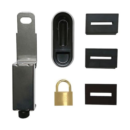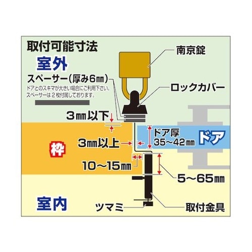 ロックカバーが金具先端まで被うので安全です。アパート・マンション空家管理や倉庫・出入口の施錠に。 |