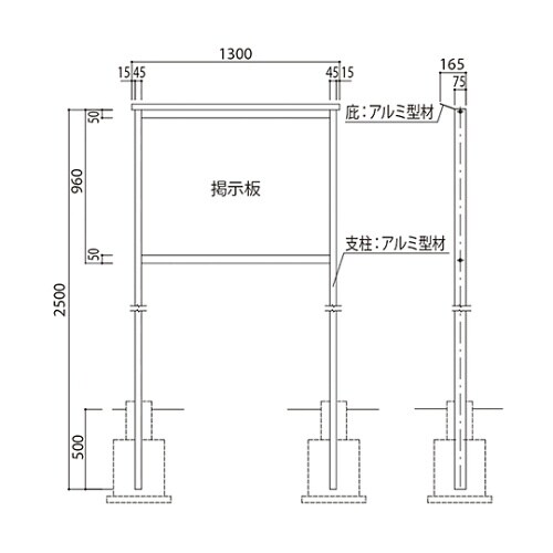 掲示板 アルミ製 屋外用 2本脚・SK−6034型 幅1300×高960mm シルバー SK−6034−1−SLC SK−6034−1−SLC 1個
