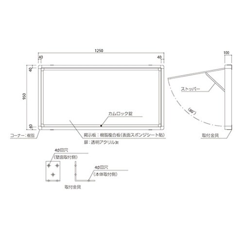 掲示板 アルミ製 屋外用 壁付・オープン型 幅1250×高950mm シルバー SK−8070−1−SLC SK−8070−1−SLC 1個